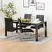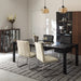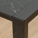 The glass-topped This dining table has a sharp design with a glass top.