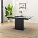 The table top is made of ceramic, which is resistant to scratches, wear, heat, and UV rays.